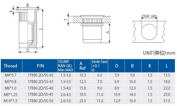 Countersunk Head Knurled Body Close End/Stainless Steel