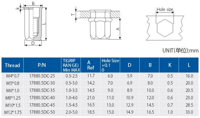 • 小沉头全六角(盲孔)